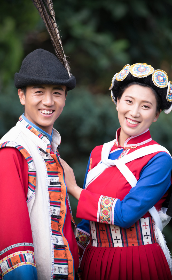 彝族在云南境內(nèi)約471萬(wàn)人,是省內(nèi)人口最多、分布最廣的少數(shù)民族,主要聚居在金沙江、元江流域和哀牢山、無(wú)量山腹地。彝族是一個(gè)能歌善舞的民族,民間打歌、跳樂(lè)之風(fēng)盛行,大三弦、跌腳舞久負(fù)盛名。火把節(jié)是彝族最具特色的民族節(jié)日。彝族村占地50余畝,三虎浮雕墻與虎頭內(nèi)祖師形象表現(xiàn)了彝族虎鷹文化。太陽(yáng)歷廣場(chǎng)圖騰柱上有太陽(yáng)、虎、火和八卦圖形象,周圍環(huán)繞著10個(gè)朝向不同的月球造型,外圓周有12生肖石雕。依山而建的“...